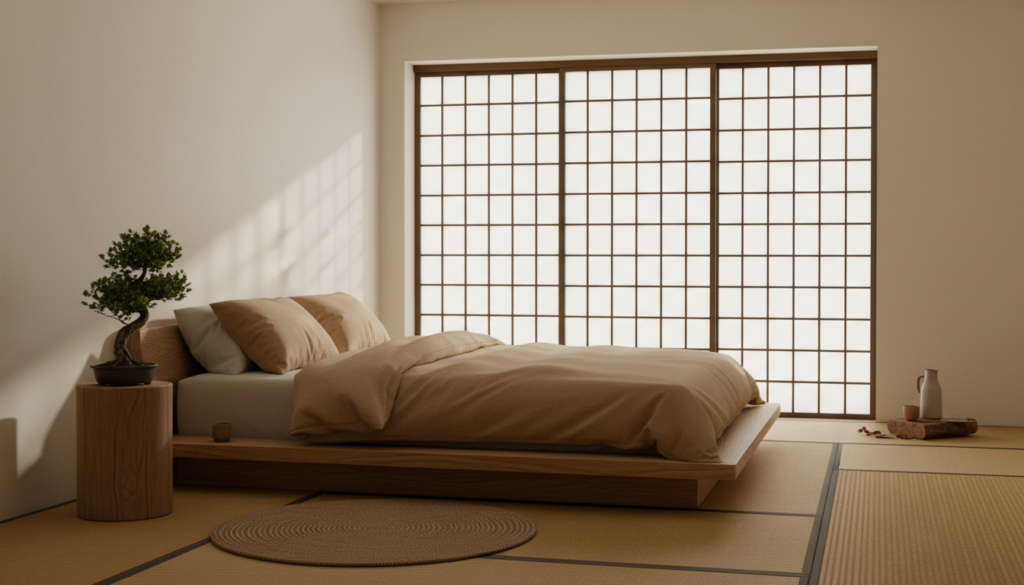 Focus on low-profile furniture with visible wood grain, shoji-inspired screens for soft light diffusion, and carefully curated negative space that allows the mind to rest. Add tatami mats or woven rush rugs for textural contrast underfoot. The result is a balanced, harmonious space that promotes mental clarity and physical relaxation through intentional design.