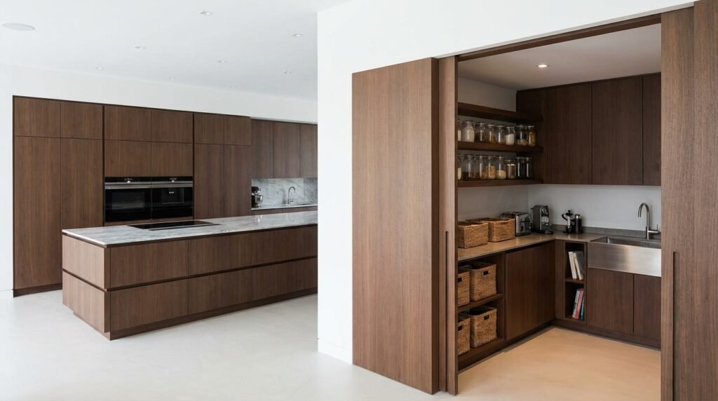 Add a secondary “dirty kitchen” for prep and storage, allowing the main kitchen to remain pristine for entertaining.