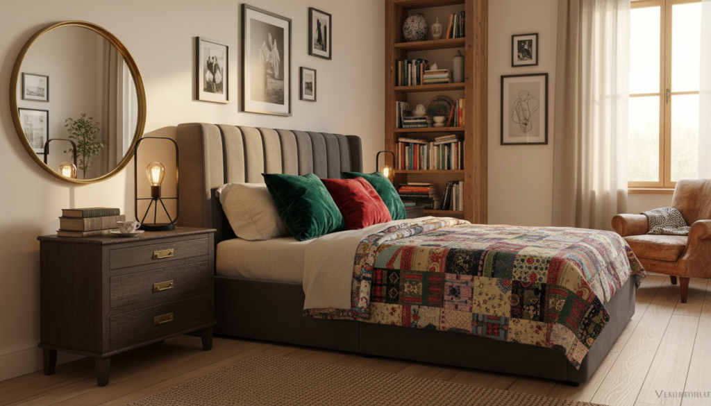 Pair inherited antique nightstands with modern beds, vintage mirrors with contemporary lighting, and eclectic textiles that tell a personal story. The key is in the mix: creating layered interiors that feel authentic and deeply personal rather than purchased from a single catalog. This “bookshelf wealth” adjacent aesthetic celebrates individuality and sustainable style.